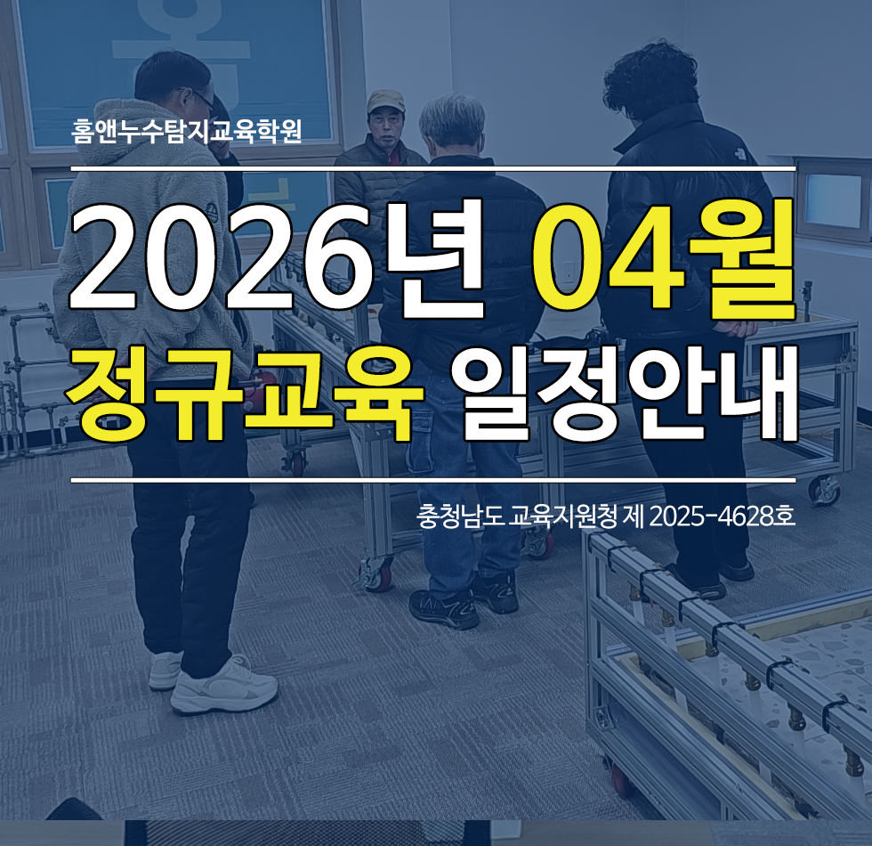4명 선착순 모집 교육일정 아래 달력을 클릭하시면 자세한 일정을 확인 할 수 있습니다. 2026년 홈앤누수탐지교육학원 [4월 정규교육 일정안내] 2026년 3월 누수탐지 정규교육 일정 2026년 1월 누수탐지 정규교육 일정 안내 2025년 12월 홈앤누수탐지학원 교육일정 홈앤누수탐지교육학원 2025년 11월 교육일정 안내 홈앤누수탐지교육학원 2025년 10월 교육일정 안내 홈앤누수탐지교육학원 9월 교육일정 안내 2025년 8월 홈앤누수탐지교육학원일정 안내 2025년 7월 홈앤누수탐지교육학원일정 안내 Page1 Page2