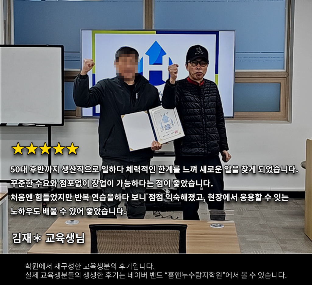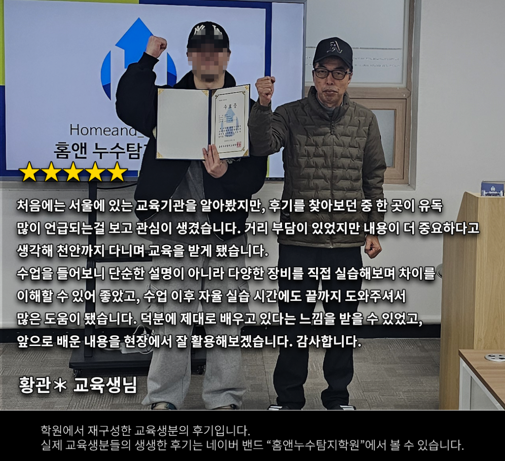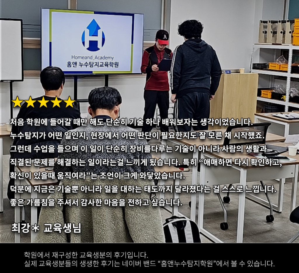 누수탐지 고민했던 분들의 생생한 후기를 확인하세요 수강생 100% 만족 도전! 네이버밴드 "홈앤누수탐지교육학원"에서 확인하세요. 노선○님 교육후기 -홈앤누수탐지교육학원- 김재○님 교육후기 -홈앤누수탐지교육학원- 최강○님 교육후기 -홈앤누수탐지교육학원- 이문○님 교육후기 -홈앤누수탐지교육학원- 황관○님 교육후기 -홈앤누수탐지교육학원- 오상민님의 누수탐지학원 후기 김성봉님의 누수탐지학원 교육후기 한지용님의 누수탐지학원후기 윤상훈님 누수탐지학원후기 Page1 Page2 Page3 Page4 Page5 Page6 Page7 Page8