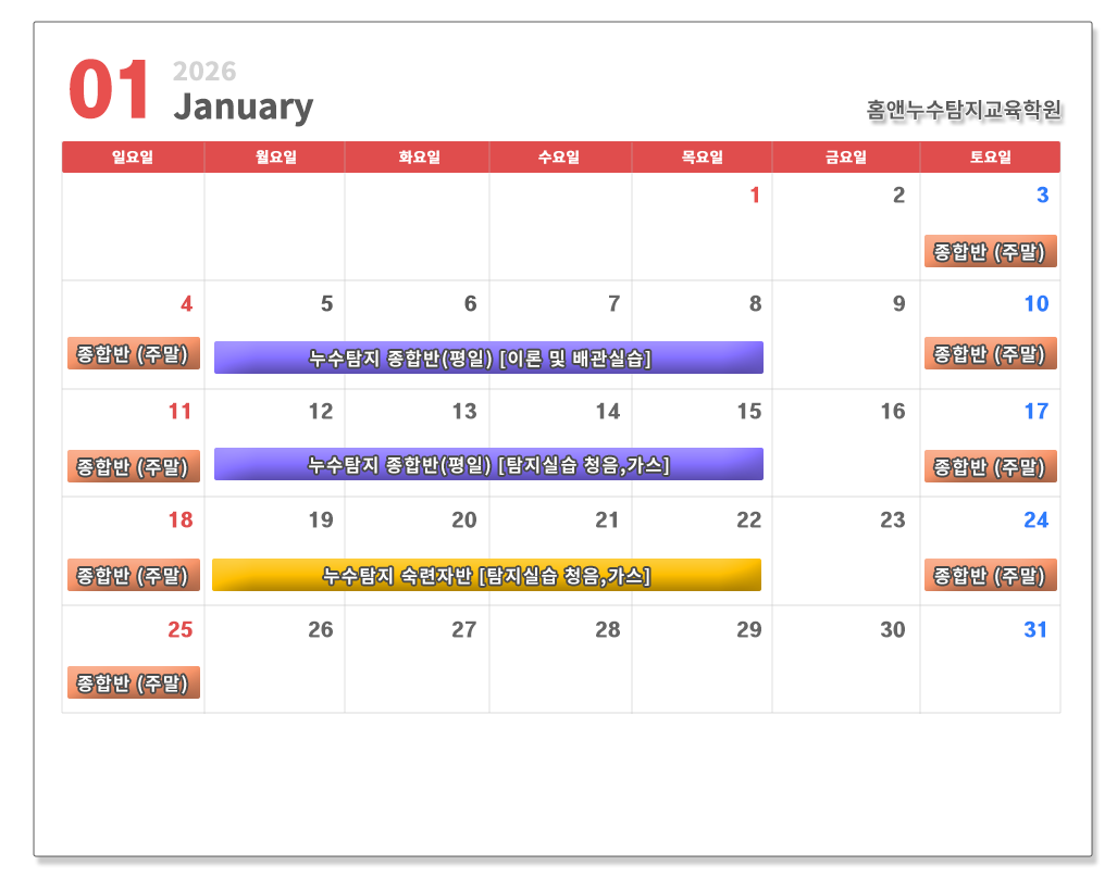 2026년 1월 누수탐지 정규교육 일정 안내