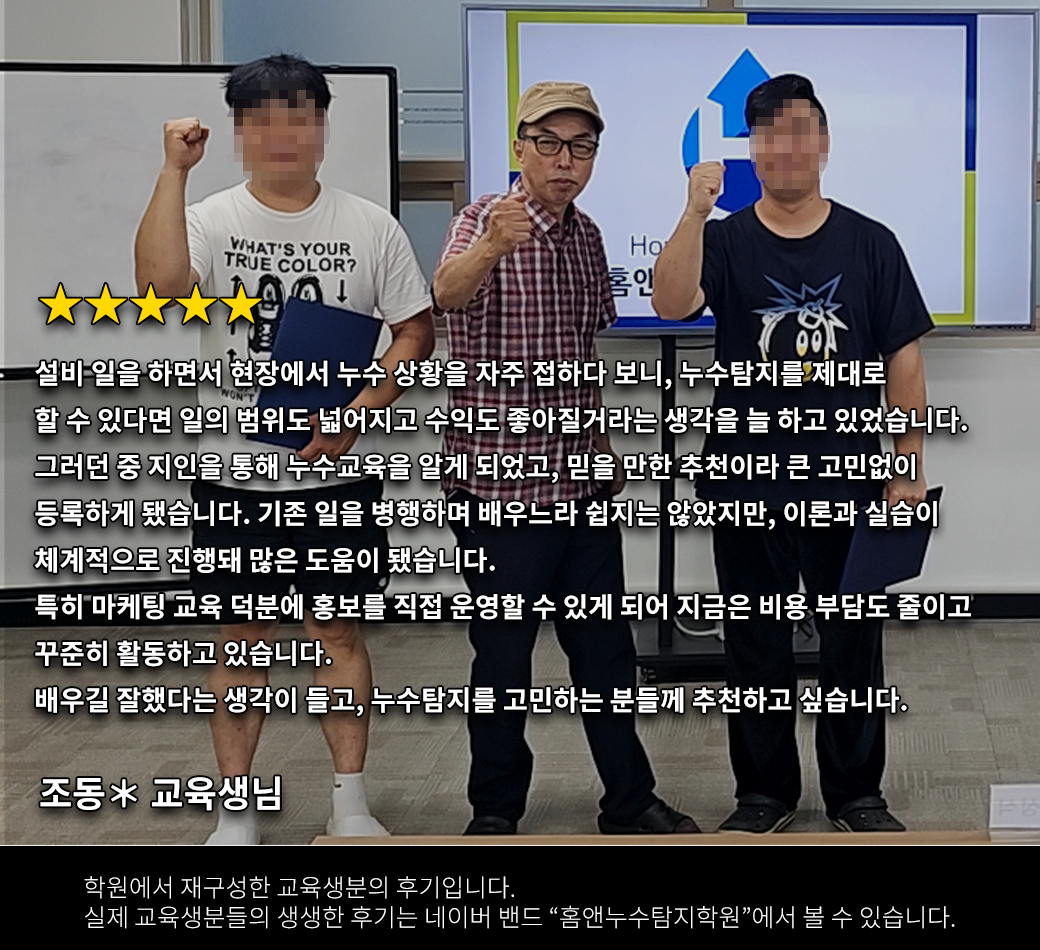 조동○님 교육후기 -홈앤누수탐지교육학원-
