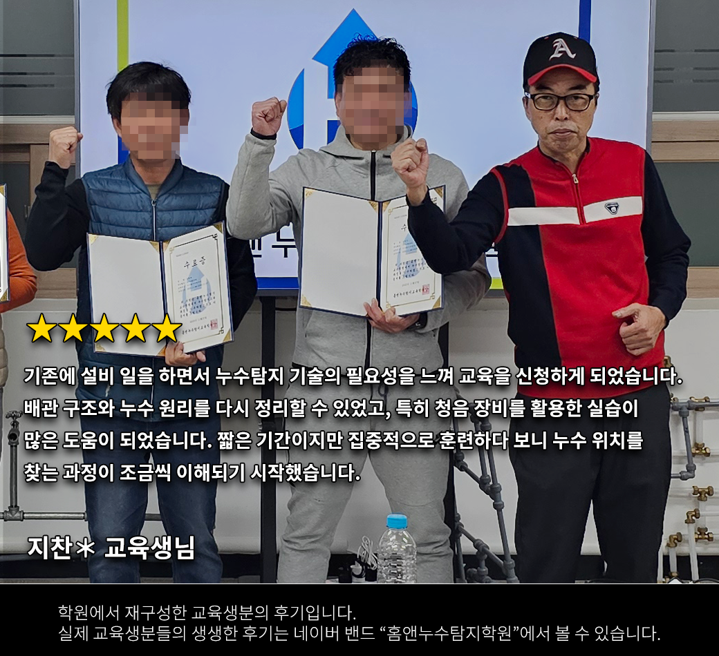 지찬○님 교육후기 -홈앤누수탐지교육학원-